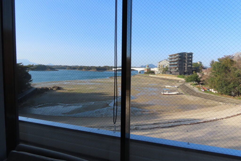 テーブルの窓から見える景色にも癒されました♪海が引き潮ですね