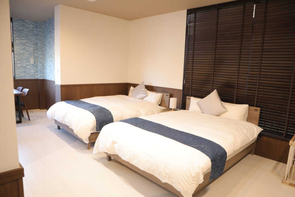 55平米で、ゆったりとしたセミダブルベッドが2つあります。